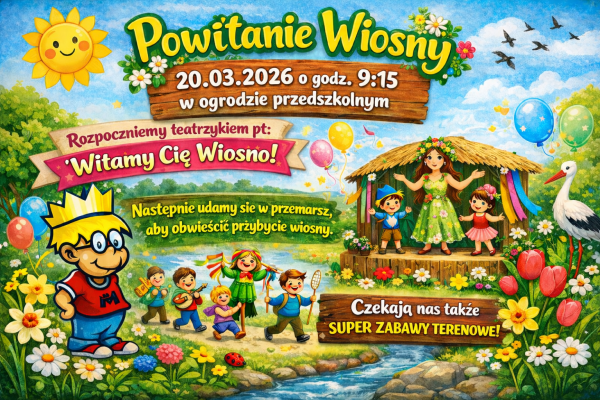 Serdecznie zapraszamy dzieci do wspólnego świętowania Powitania Wiosny, które odbędzie się 20 marca 2026 r. o godzinie 9:15 w ogrodzie przedszkolnym.