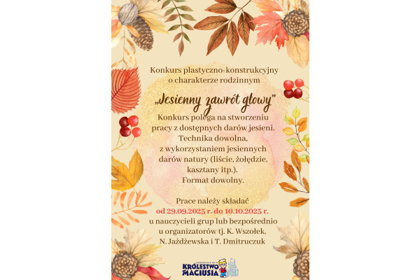 Czytaj więcej!Konkurs plastyczno-konstrukcyjny o charakterze rodzinnym „Jesienny zawrót głowy”