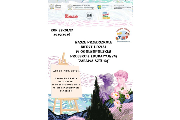 Z radością informujemy, że w roku szkolnym 2025/2026 nasze przedszkole dołączyło do ogólnopolskiego projektu edukacyjnego „Zabawa sztuką”.