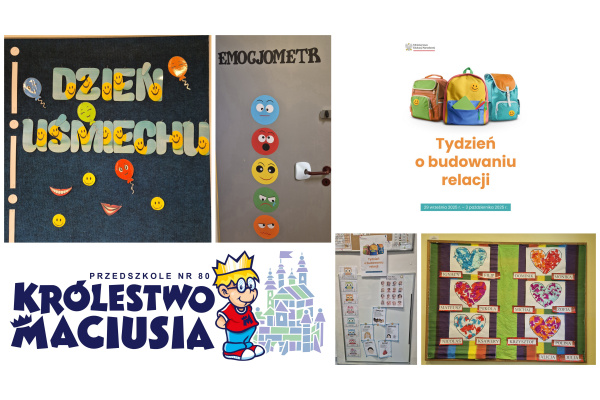 W dniach 29 września – 3 października 2025 r. w Przedszkolu nr 80 "Królestwo Maciusia" w Bydgoszczy odbyło się wyjątkowe wydarzenie pod hasłem: "Tydzień Przeciwdziałania Przemocy Rówieśniczej i Tydzień Budowania Relacji". Był to czas poświęcony kształtowaniu wśród najmłodszych postaw opartych na szacunku, empatii, akceptacji i współpracy.