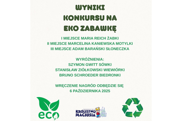 Miło nam poinformować, że znamy już wyniki przedszkolnego konkursu na Eko Zabawkę.