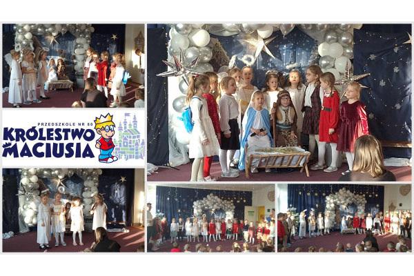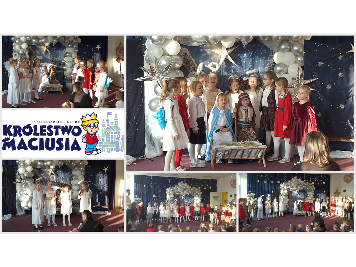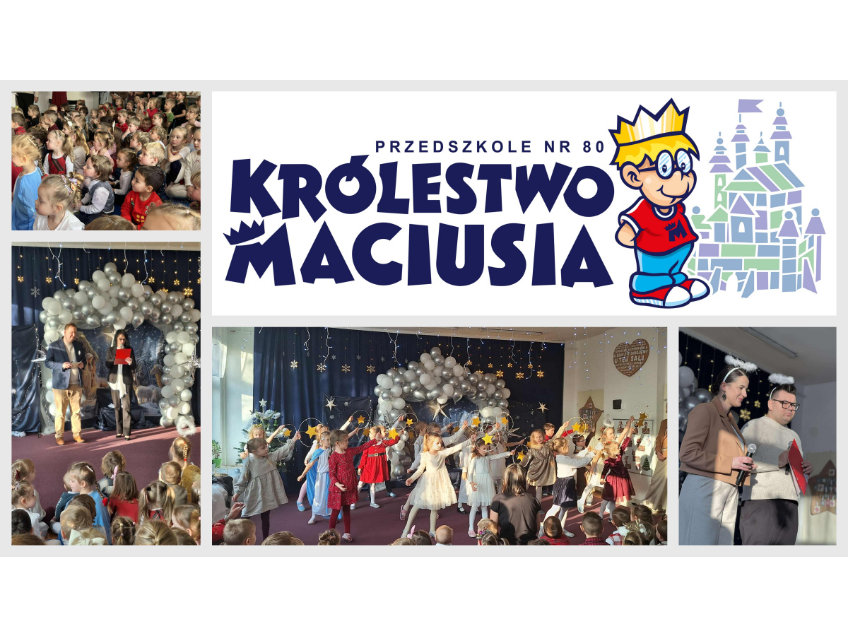 Uroczystość rozpoczęła się występem grupy Żabki, która zaprezentowała piękne Jasełka, wprowadzając wszystkich w bożonarodzeniowy nastrój. Następnie przed publicznością wystąpił zespół wokalny „Maciusiowe Słowiki”, zachwycając słuchaczy świątecznym koncertem. Całość dopełniły serdeczne życzenia świąteczne złożone przez Dyrekcję Przedszkola. Wielką radość dzieciom sprawiła również wizyta Gwiazdora, który przywitał się z przedszkolakami i odwiedził każdą salę, zostawiając prezenty dla wszystkich grup. Tego dnia nie zabrakło także wspólnych, twórczych działań – każda grupa z zapałem ozdabiała świąteczne pierniki.