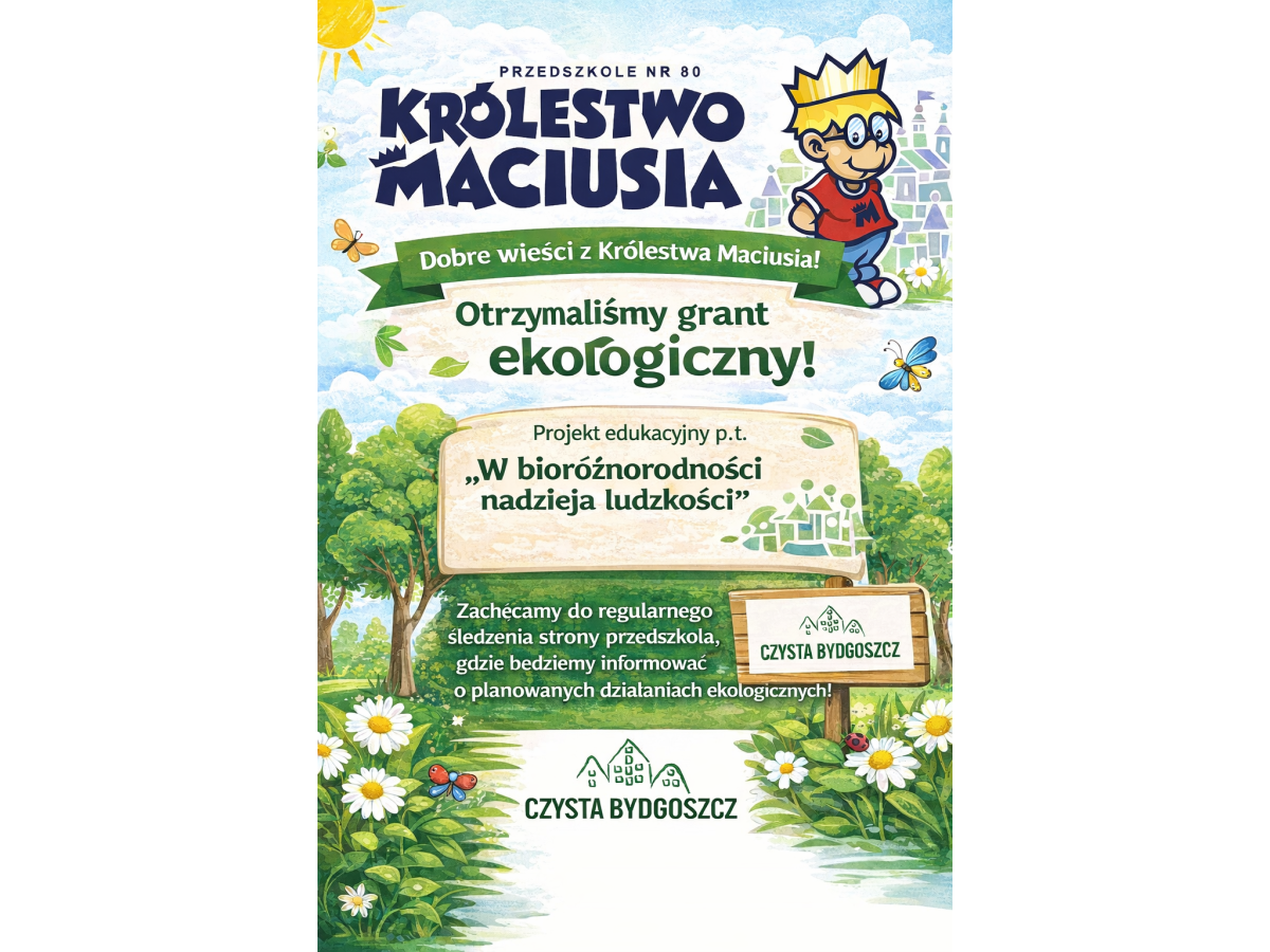 Przedszkole nr 80 „Królestwo Maciusia” w Bydgoszczy otrzymało dofinansowanie w ramach Bydgoskiego Grantu Ekologicznego – edycja 2026.