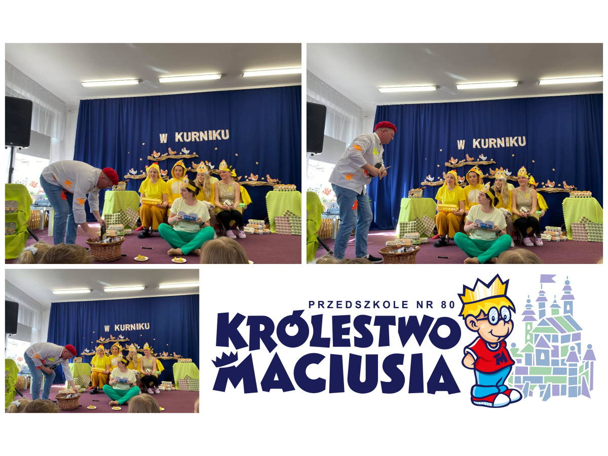 Na czas występu sala przedszkolna zamieniła się w prawdziwą scenę teatralną. Nauczyciele wcielili się w zabawne i wyraziste postacie, a kolorowe kostiumy, rekwizyty oraz oprawa muzyczna stworzyły wyjątkowy klimat przedstawienia. Historia opowiadała o pomysłowych kurach, które postanowiły rozkręcić własny „pisankowy biznes”, co prowadziło do wielu zabawnych sytuacji i nieoczekiwanych zwrotów akcji.