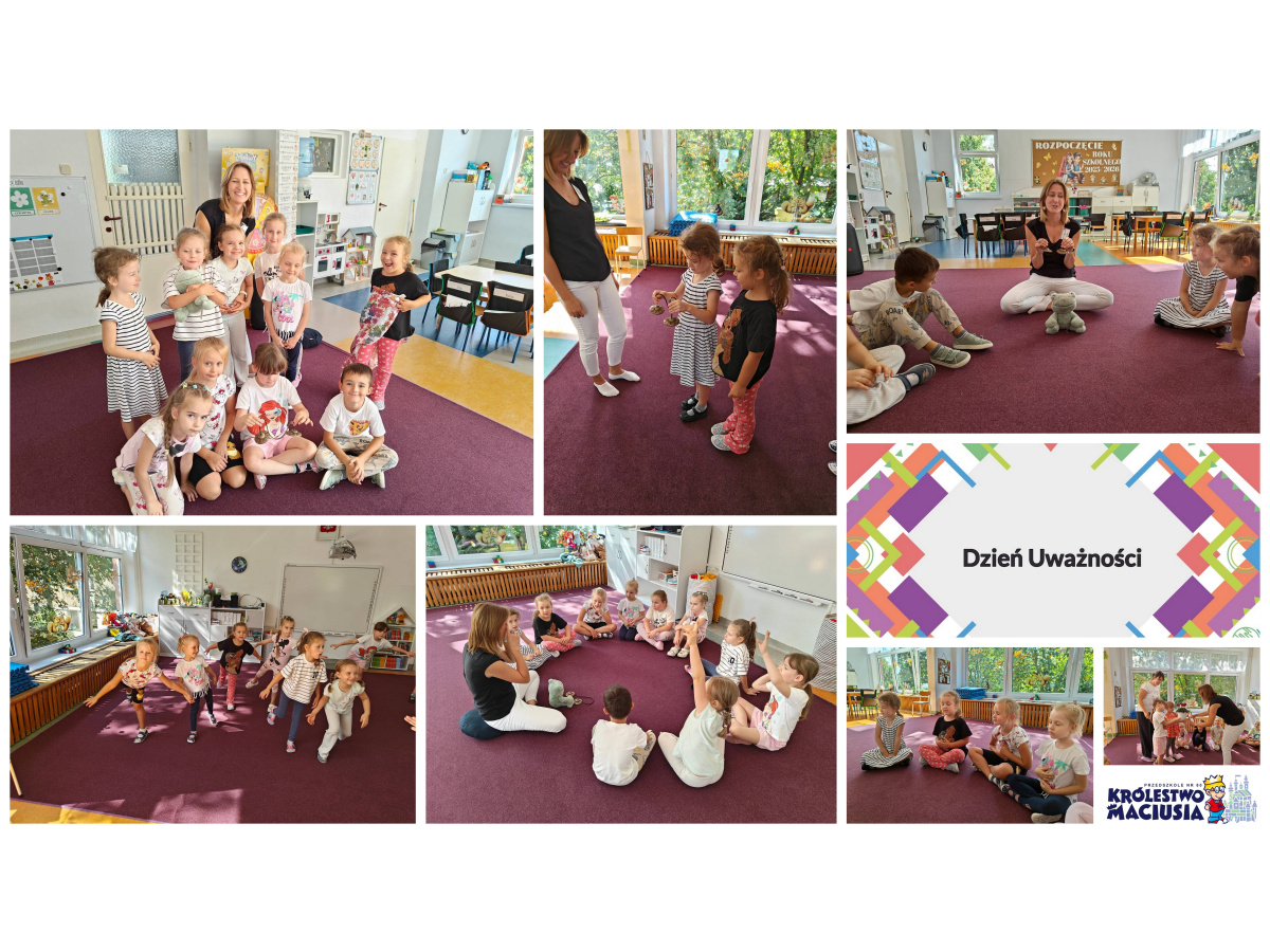 We wrześniu w naszym przedszkolu odbył się wyjątkowy Dzień Uważności zorganizowany dla dzieci z grupy Żabek. Zajęcia poprowadziła Pani Kamila Szymańska – trenerka uważności ze Strefy Mindfulness, która z pasją i zaangażowaniem wprowadziła dzieci w świat spokoju, skupienia i świadomego przeżywania chwili.