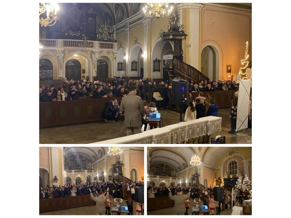 Wydarzenie rozpoczęło się serdecznym powitaniem wszystkich gości przez Księdza Krzysztofa, który skierował do zgromadzonych ciepłe słowa i podkreślił wyjątkowy, rodzinny charakter spotkania. Następnie na scenie zaprezentował się zespół „Maciusiowe Słowiki” wraz z nauczycielami z Przedszkola nr 80 „Królestwo Maciusia”. Mali artyści z ogromnym zaangażowaniem i radością wykonali znane kolędy i pastorałki, wprowadzając publiczność w świąteczny nastrój pełen refleksji, radości i wzruszeń.