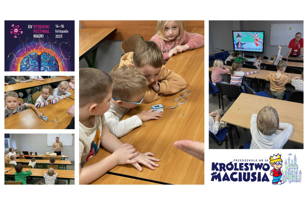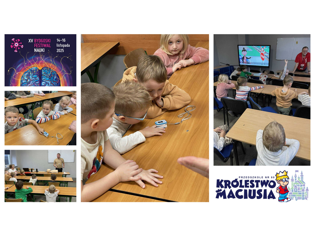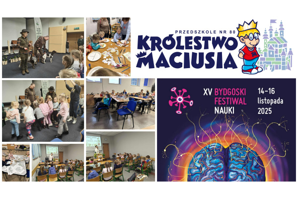 14 listopada dzieci z Przedszkola nr 80 „Królestwo Maciusia” wybrały się na niezwykłą przygodę – udział w barwnym i pełnym niespodzianek Festiwalu Nauki organizowanym przez Bydgoską Szkołę Wyższą. Już od pierwszych chwil było wiadomo, że czeka je dzień pełen emocji, odkryć i dobrej zabawy.