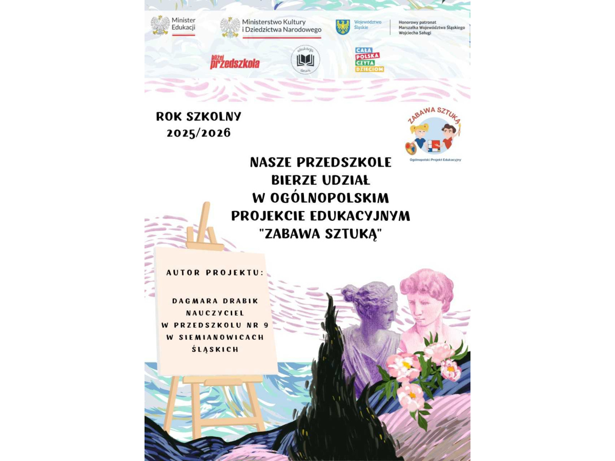 Z radością informujemy, że w roku szkolnym 2025/2026 nasze przedszkole dołączyło do ogólnopolskiego projektu edukacyjnego „Zabawa sztuką”.
