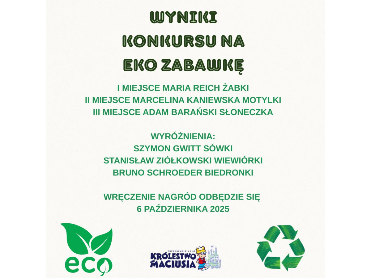 Miło nam poinformować, że znamy już wyniki przedszkolnego konkursu na Eko Zabawkę.